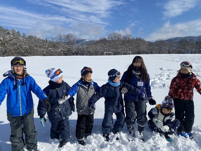 一日目は、バスで兎和野高原に移動し施設に到着後に、まずは目の前にある雪でとことん遊びます!