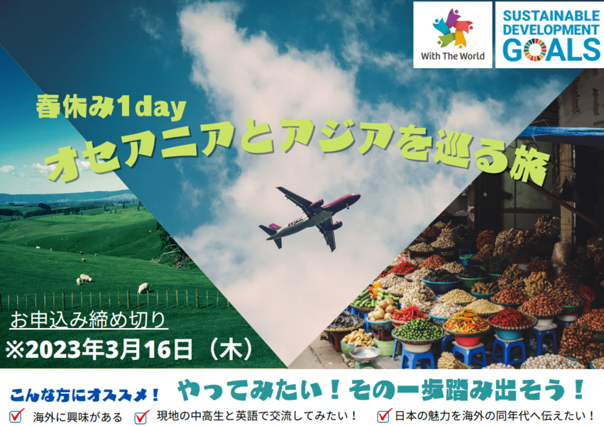 ●日時:2023年3月30日(木) オセアニア圏との交流 9:00-11:00 の内90分&アジア圏との交流 13:00-14:30