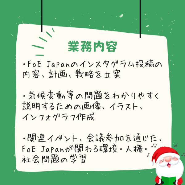 - 国際環境NGO FoE Japan インスタグラム担当インターン募集!