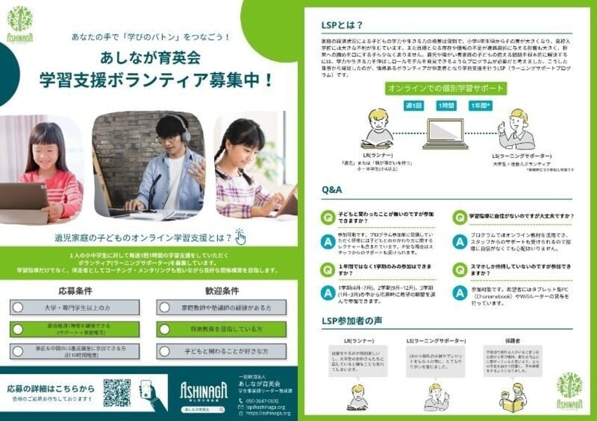 【募集中!】2024年遺児小中学生学習支援ボランティア / あしなが育英会
