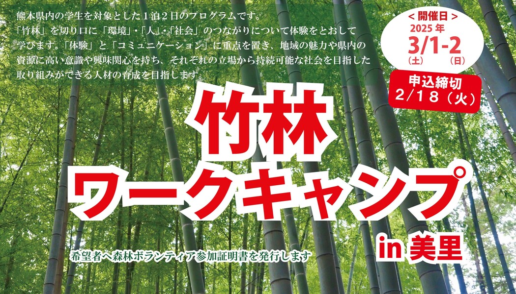 ※令和6年度(2024年度)熊本県県民の未来につなぐ森づくり事業を活用しているため、熊本県内在住もしくは県内の学校に通学する方のみ |
