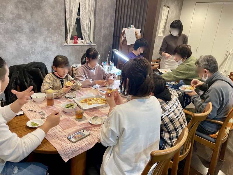 一戸建て住宅で、金曜日夕方、主に小中学生の学習支援と居場所の活動をしています。学習支援の他、子どもに合わせて、工作、料理などをした後、一緒に手作りの夕食を食べます。