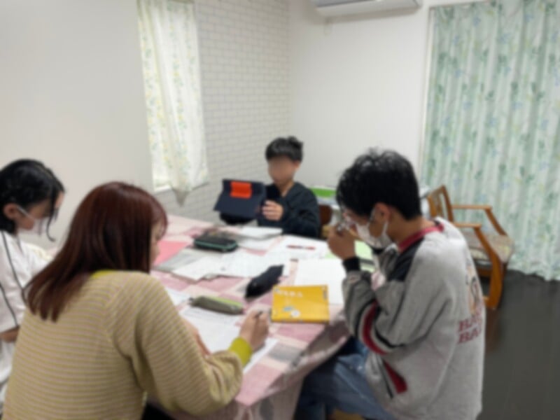 さまざまな子どもや若者が、居場所としてきており、一緒に料理を作ったり、食べたりおしゃべりしています。頑張って勉強している子もいます。少人数なので和気あいあいとしています。