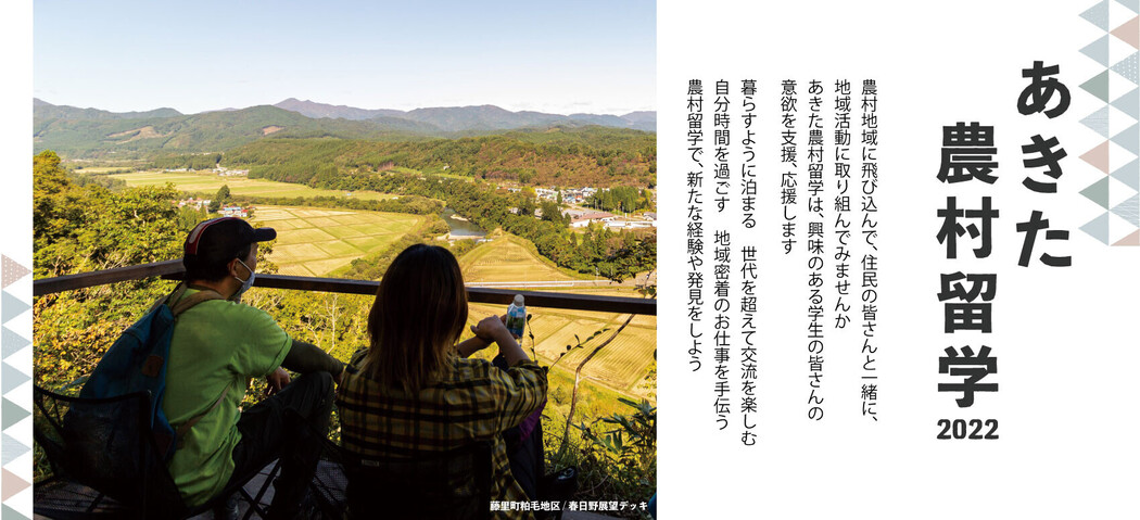 秋田県内の農山村地域で、インターンシップ体験してみませんか?いつもの旅とは異なり、農村で暮らすように泊まる5日間。田舎の情報を発信したり、地域毎の活動のお手伝いを通じた世代を超えた交流で田舎を元気に!