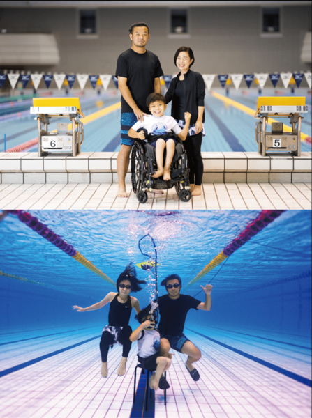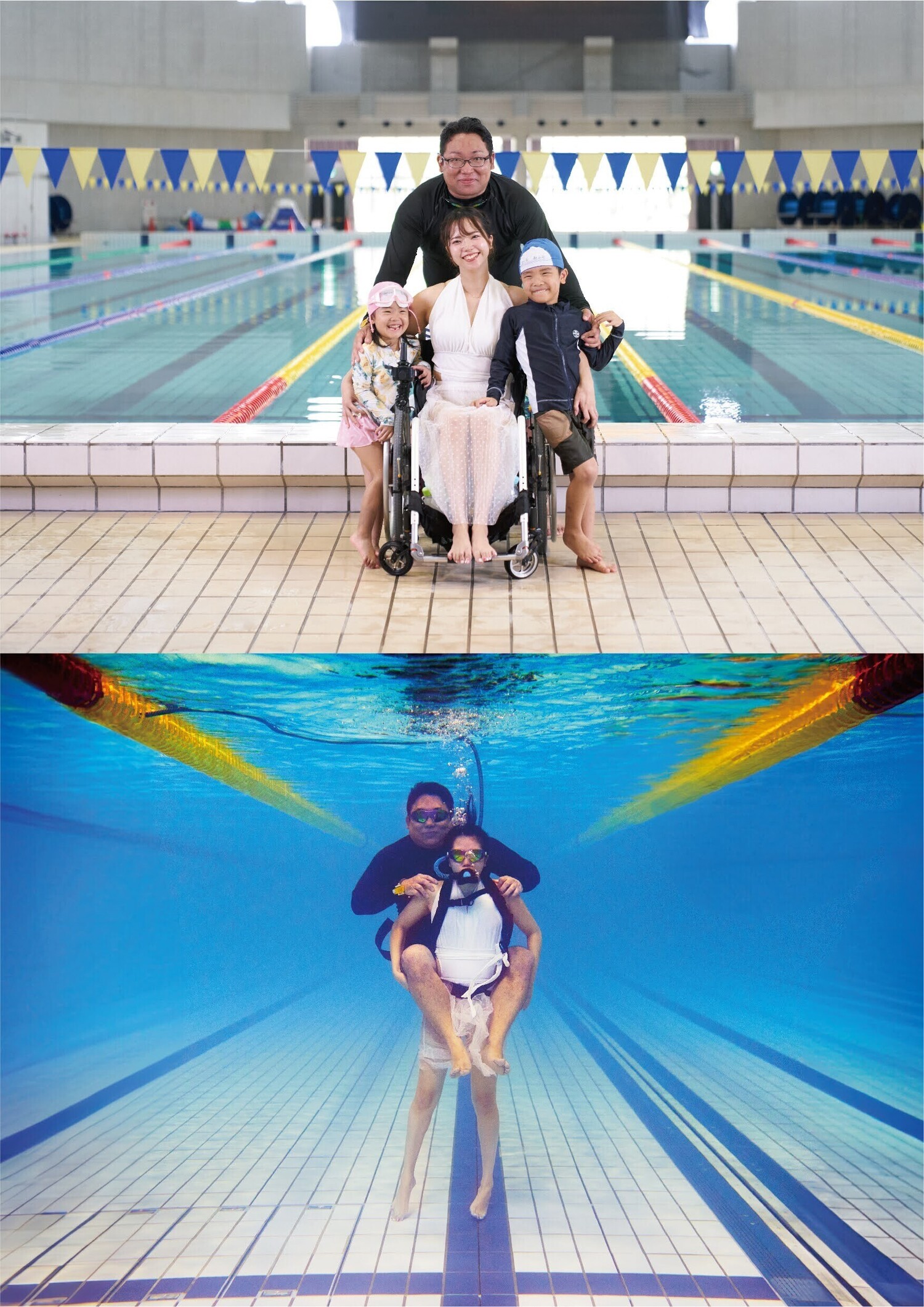 プールサイドに置かれた車椅子。でも、プールの中を見ると、いったい誰のものなのかわかりません。