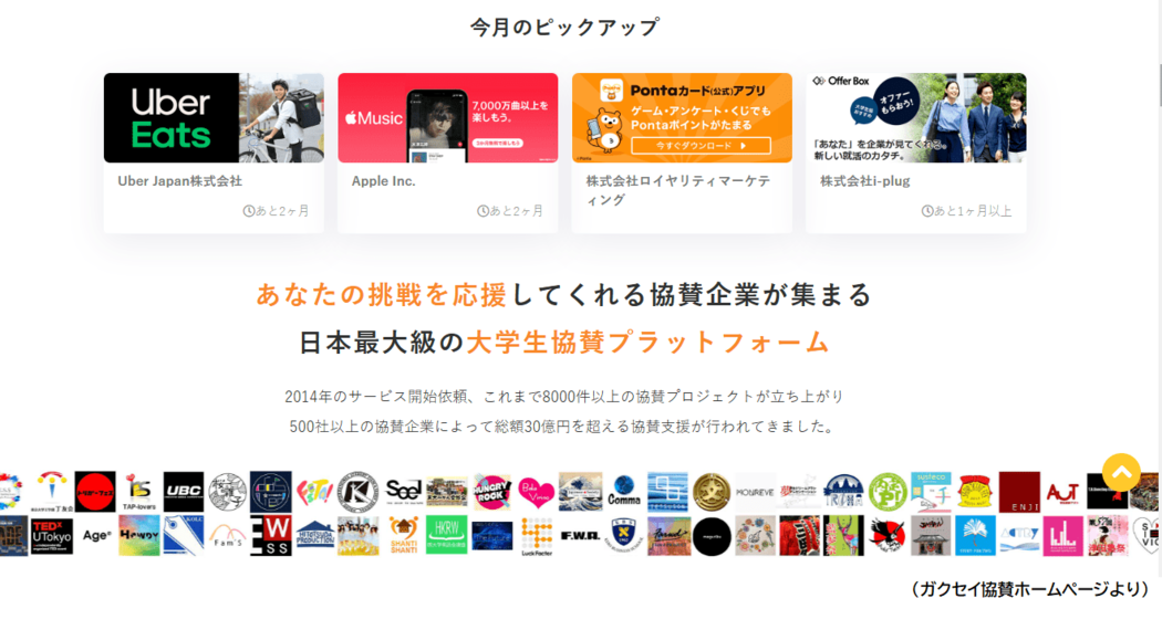 ※「ガクセイ協賛」は日本最大級の学生協賛プラットフォームとして、株式会社ガロアさんが運営している企業連携プロジェクトです。これまで520社、8000件のプロジェクトが実施されています。