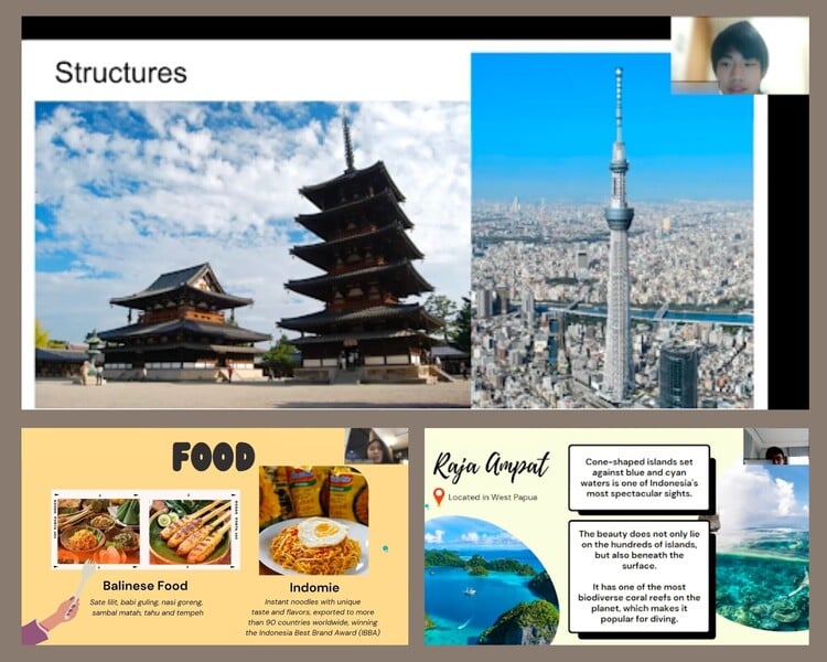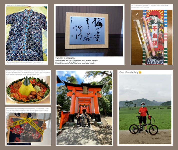 両国混成グループに別れてオンライン掲示板とビデオチャットを併用して趣味や伝統的アイテム、日常生活を共有!意外と部活や学校行事など似ていることにお互い驚きます:>