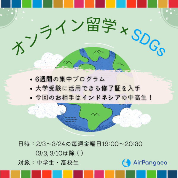 【キャンセル待ち】オンライン留学×SDGs (東南アジア同世代と過ごす6週間!)