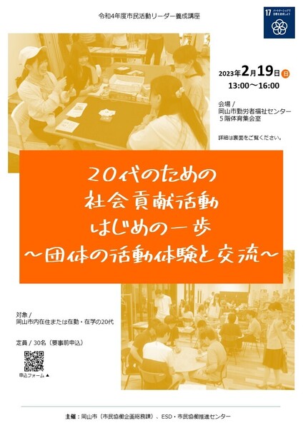 - 20代のための社会貢献活動はじめの一歩~団体の活動体験と交流~