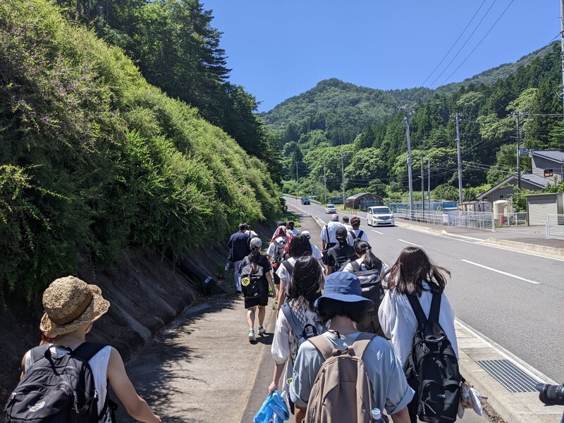当日両校の生徒が歩いた道のりの一部を歩きながら、震災当日の出来事についてお話を伺います。