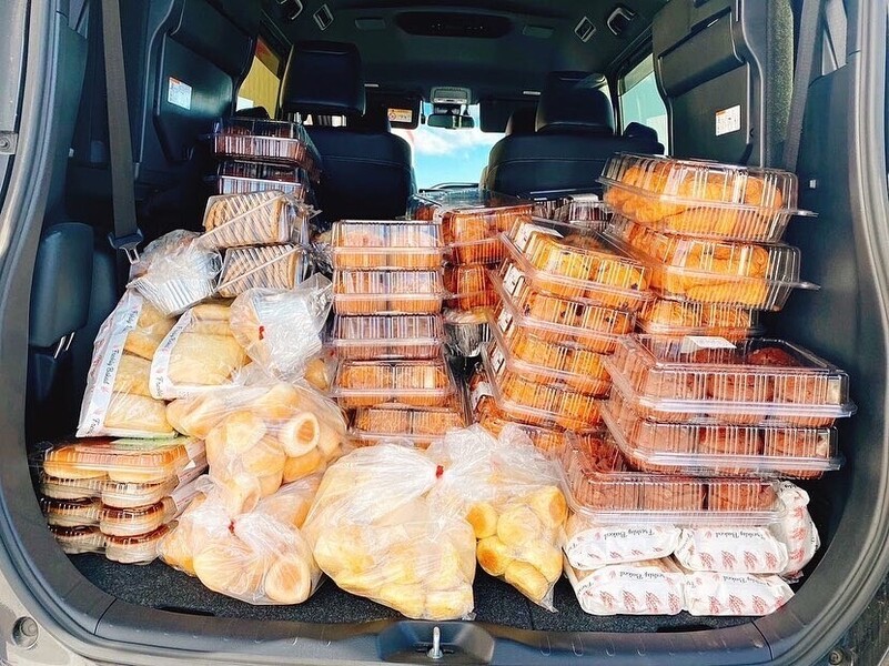 企業様より食品ロスをご寄付いただき、学校内でフードパントリーを開催しています!ぜひこどもの食の支援の仲間になってください☆学生ボランティアさんには活動で余ったパン類のシェアをしています。