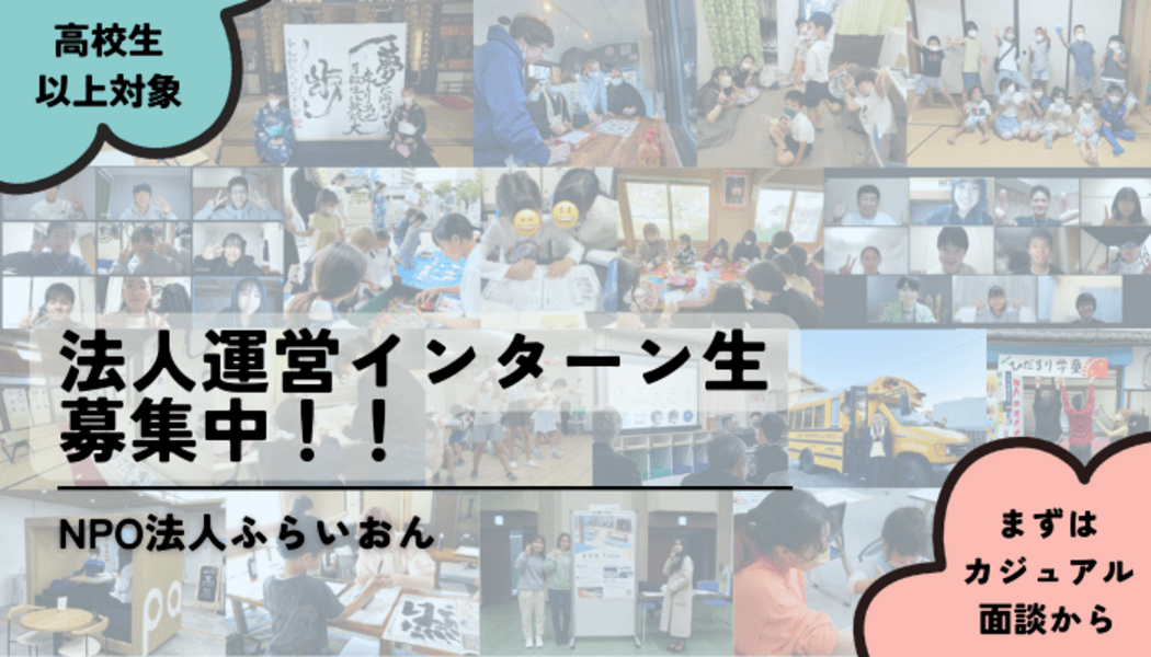 「すべての子どもたちが無料で学べる社会の実現」を掲げ、活動しているNPO法人ふらいおんです。NPO法人運営の裏側に関われるインターンで、自己成長しながら、子どもの教育に携わってみませんか?