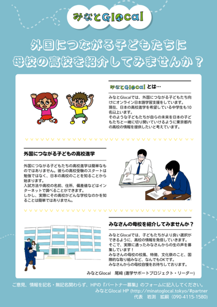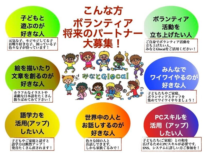 「みなとGlocal」の活動に参加して、あなたの夢も子ども達の夢も実現できる様に一緒にトライして下さい!