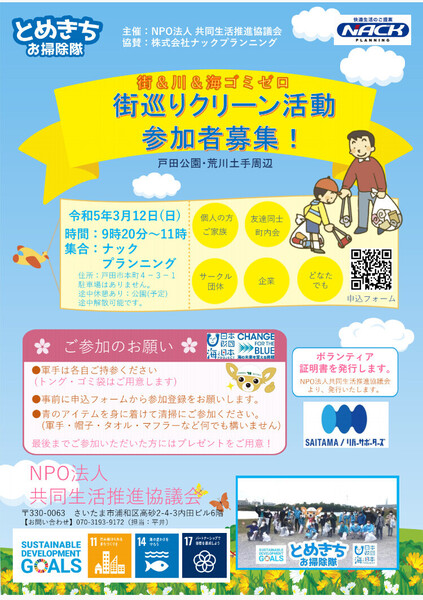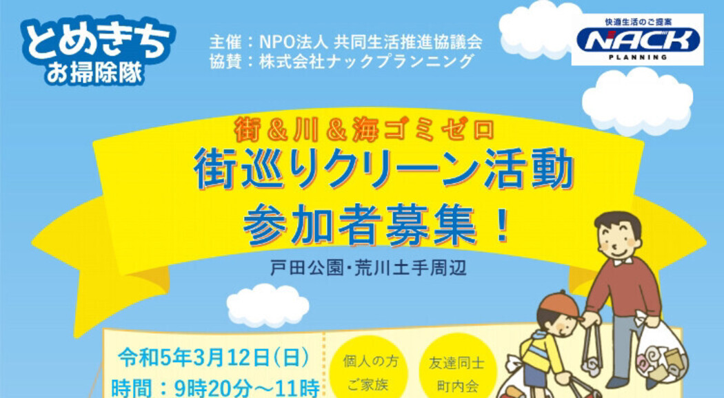 - 3/12(日)戸田【清掃ボランティア募集】とめきちお掃除隊(海と日本プロジェクト