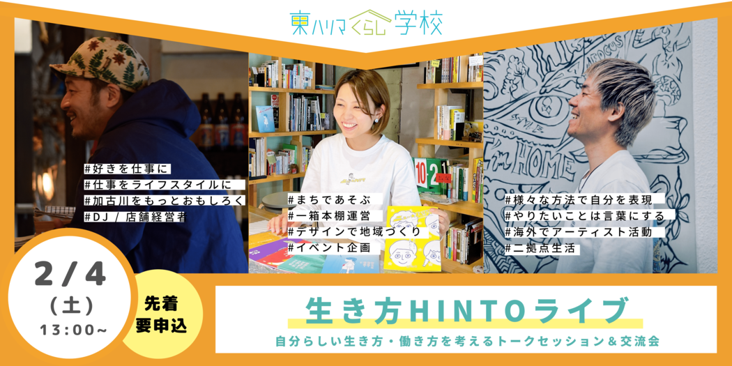 - 生き方HINTOライブ〜生き方・働き方を考えるトークセッション&交流会〜