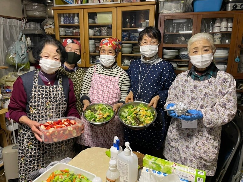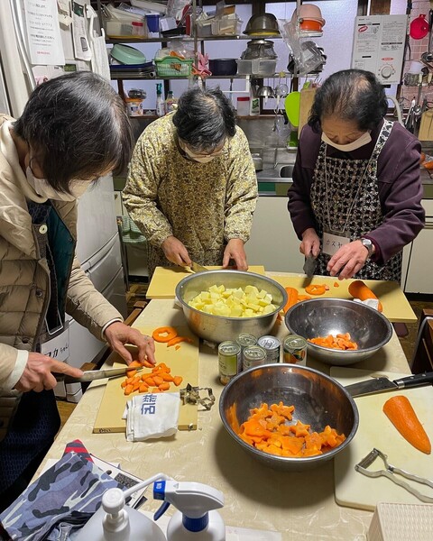 調理スタッフは調理経験豊富なシニアの女性の会員さんが主につとめてくださっています。それぞれが率先して手際よく調理をしてくださっています。あまりレシピを印刷してというよりも、それぞれの経験を活かして主体的に取り組んでくださっています。準備から後片付けまで丁寧にこなしてくださいます。