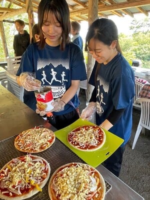 海の見える命の森にて森林整備やキャンプ場整備のための施設づくりを行います。お昼の熱源体験プログラムでは、全員分の食事を野外炊飯にて準備します。火の起こし方からその工夫までー。ライフラインの絶えた環境で、デジタル世界を抜け出して生き抜くために必要な知恵を学ぶことができます!