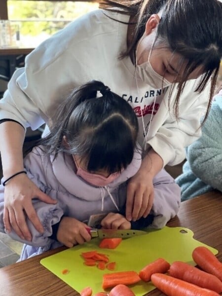 ホームシックの対応やこどもとの料理など初めてのことがあったがその分多くのことを学べました。全体を見つつ、個々のこどもを見ていくのは大変だったが、これは看護でも大切なことで、持ち前の観察力が活かせたと思います。パワフルなこどもに体力を奪われながらも、こどもからの「だいすき」といった言葉に癒され、こどもと関わることの楽しさや大変さを経験することができました。同班のスタッフとも連携でき、他のスタッフが私のことを気にかけてくださり本当に感謝しています。看護師となってまた戻ってきて、こどもの怪我や病気の対応ができるスタッフになりたいです。3日間ありがとうございました。(大学生/女性)