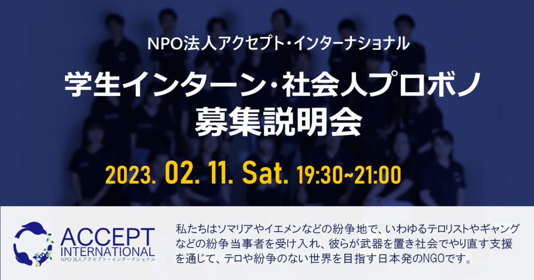 この募集の受入法人「NPO法人アクセプト・インターナショナル」をフォローして、