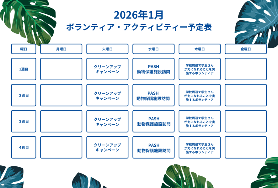 放課後は無料のボランティア・アクティビティーに誰でもご参加いただけます。