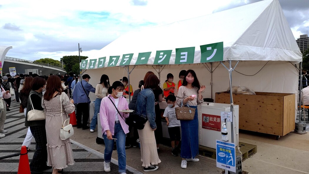 来場者が自分の手でごみ資源を分別できるようにする "ごみ資源の分別ナビゲート" や、ごみの根本削減に取り組む "リユースカップ・食器"の導入など、イベントの環境負荷を下げるための活動をボランティアと一緒に運営しています。