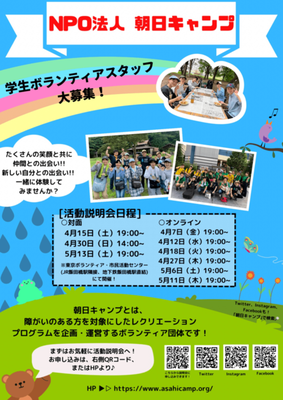 NPO法人朝日キャンプこの募集の受入法人「NPO法人朝日キャンプ」をフォローして、