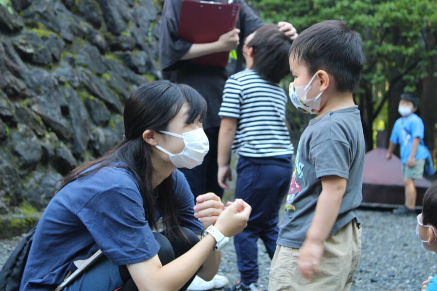 また、幼稚園では決められた事を決められた時間に行う事が多いのですが、野外 活動ではリーダー達と話し合いで企画したプログラムを子どもたが、「楽し い!」と言ってくれる事が何より嬉しく、活動してよかったなと思う瞬間です。