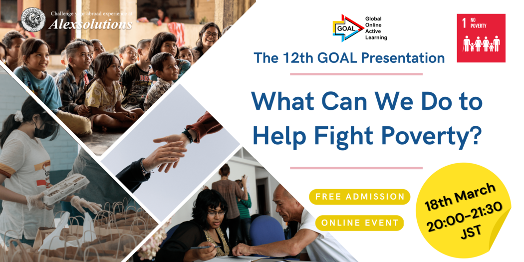 【参加者募集!】SDGs目標1:世界の貧困について英語でディスカッションしてみて、自分たちに何ができるのか考えてみませんか?