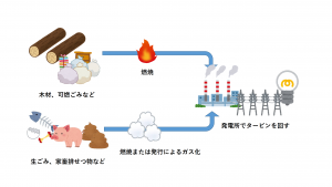 ※バイオマス発電とは、生物資源(バイオマス)を燃焼、もしくはガス化させてタービンを回し、電気を生み出す発電方法のことです。