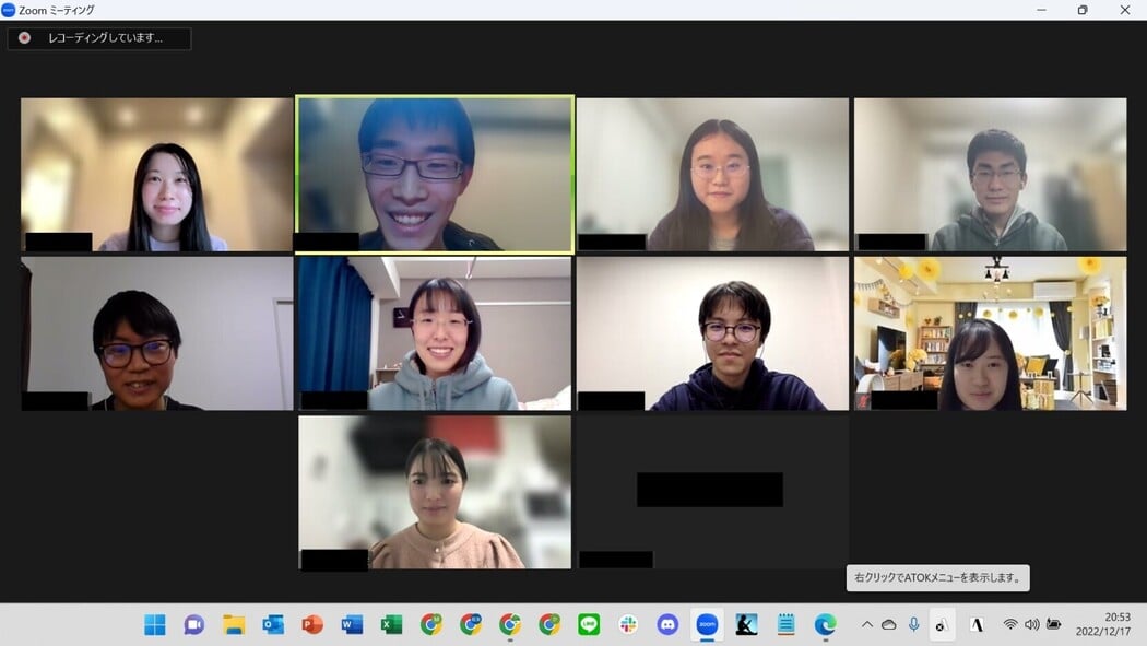 ・定期的に、少人数のグループでオンラインのZoomミーティングを開きます。原則参加をお願いいたします。