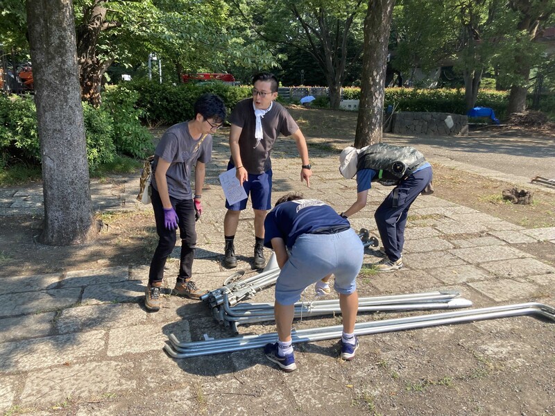 主な活動としては、運動会で使われるようなテントの部材を崩したり紐で縛ったり、備品を運んだり、出店車両の誘導などを行います。