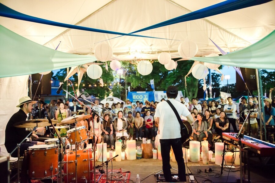 今回もアースコンシャスなマーケットエリア、クラフト作品や自然素材のアパレルや雑貨、美味しいフードやドリンクも並び、楽しい夜を盛り上げます