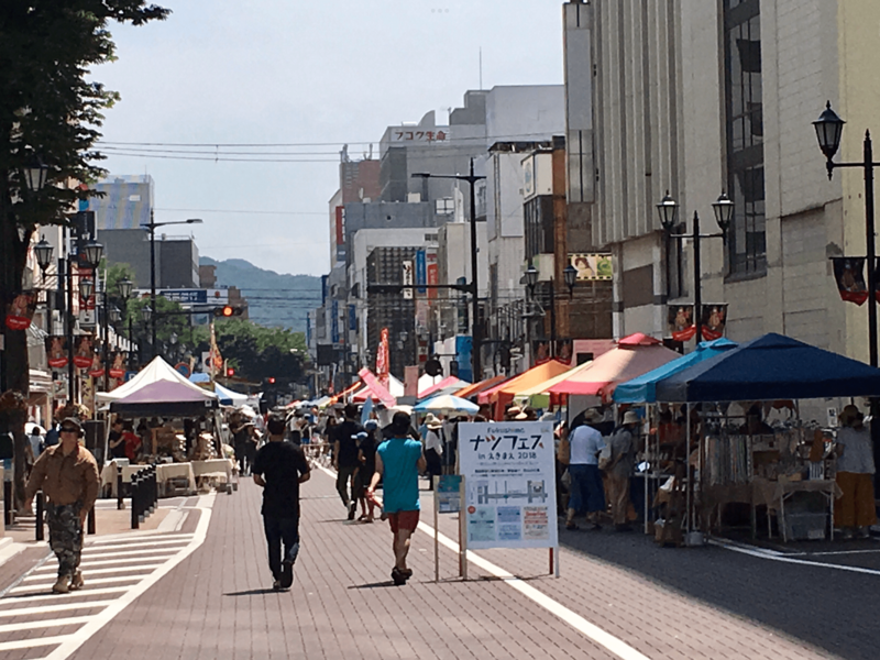 7月16日には、毎年恒例の「ナツフェス」開催。 福島県内の物産ブースや、パフォーマンスなどのステージと共に手づくり品のブースを駅前通りに並びます。