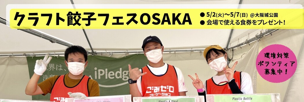 - ごみを拾わない環境対策ボランティア!クラフト餃子フェス【大阪城公園】5/2-7