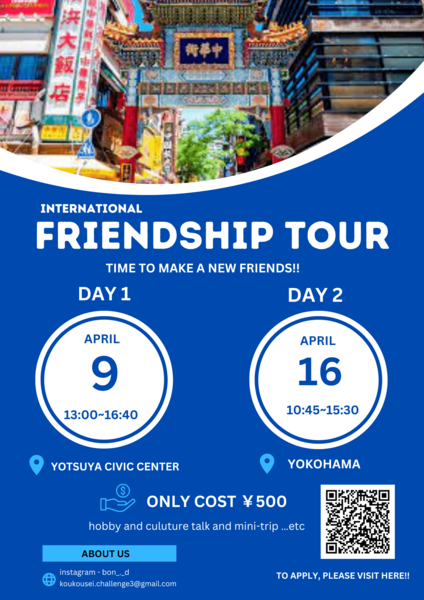 - 【国際交流イベント4/9&4/16】インターナショナルフレンドシップツアー