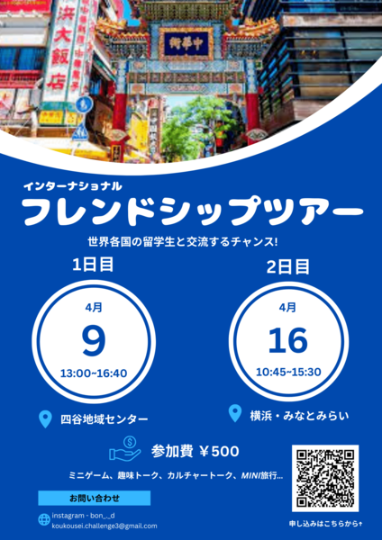 【国際交流イベント4/9&4/16】インターナショナルフレンドシップツアー