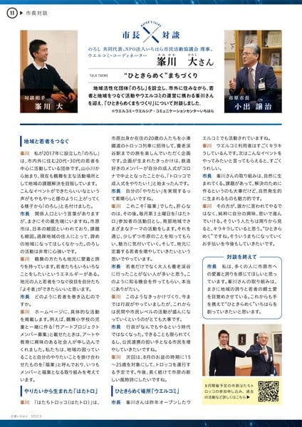 →若者も高齢者も、みんなが活躍できるまちを作ることができれば、「しあわせ」を自らつくっていける人が増えると考えています。