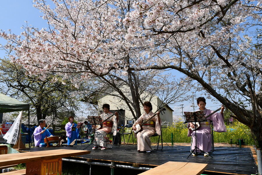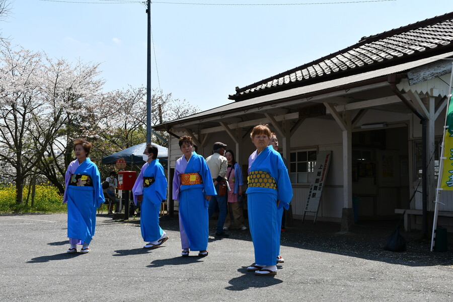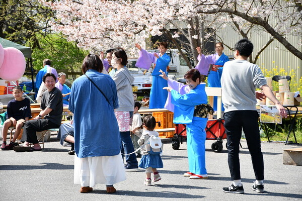 市原市にある無人駅「上総鶴舞駅」の駅前で、桜の木の下、地域の方々と民謡を踊ったり、食べ物の販売などを行なうイベントでした。