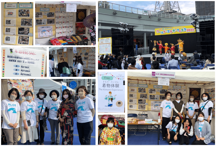 毎年名古屋の栄で開催している多文化共生・国際交流イベント「ワールドコラボフェスタ」に出展し、私たちの活動紹介をしています。