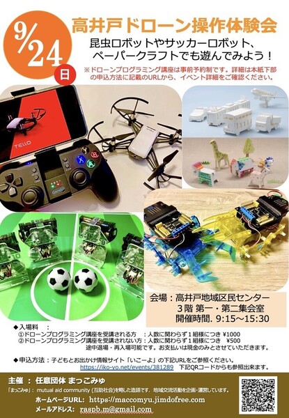 ドローンや昆虫・サッカーロボットで遊ぼう!(9/24 杉並区)運営スタッフ募集!