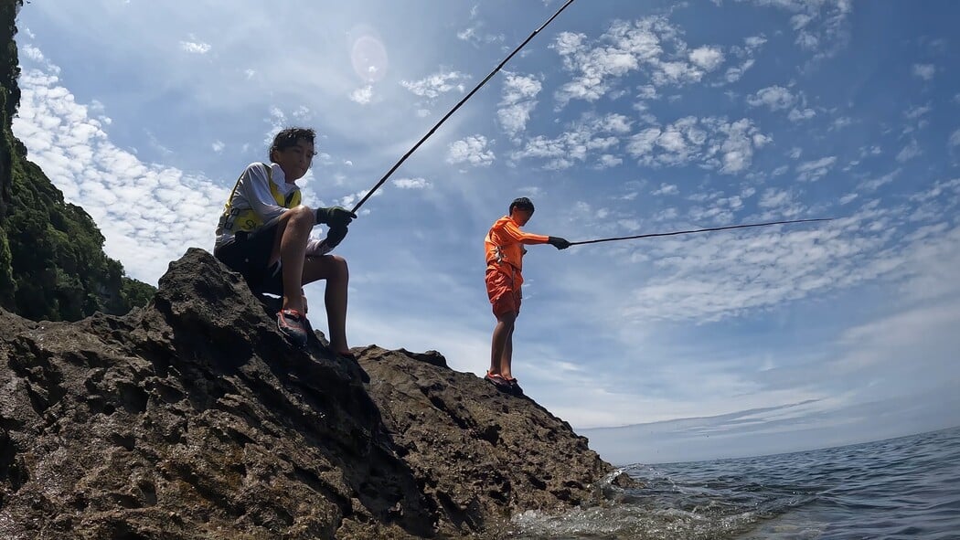 海キャンプ‐海水浴、スノーケリング、イカダ遊び、磯遊びなど。