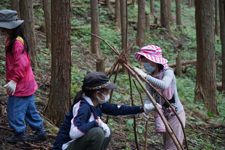 山キャンプ‐川遊び、野外ゲーム、秘密基地づくりなど。