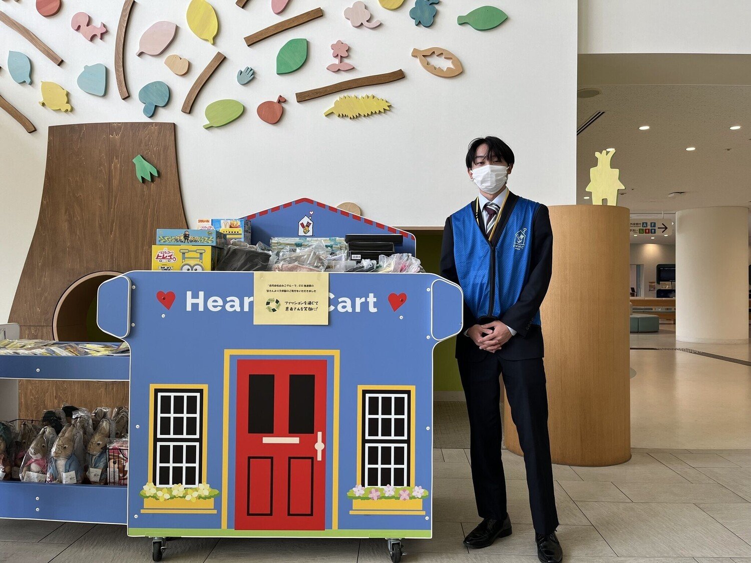 兵庫県立こども病院にてハートフルカートでアパレル企業で売れ残った新品の衣類の寄付活動を行いました。