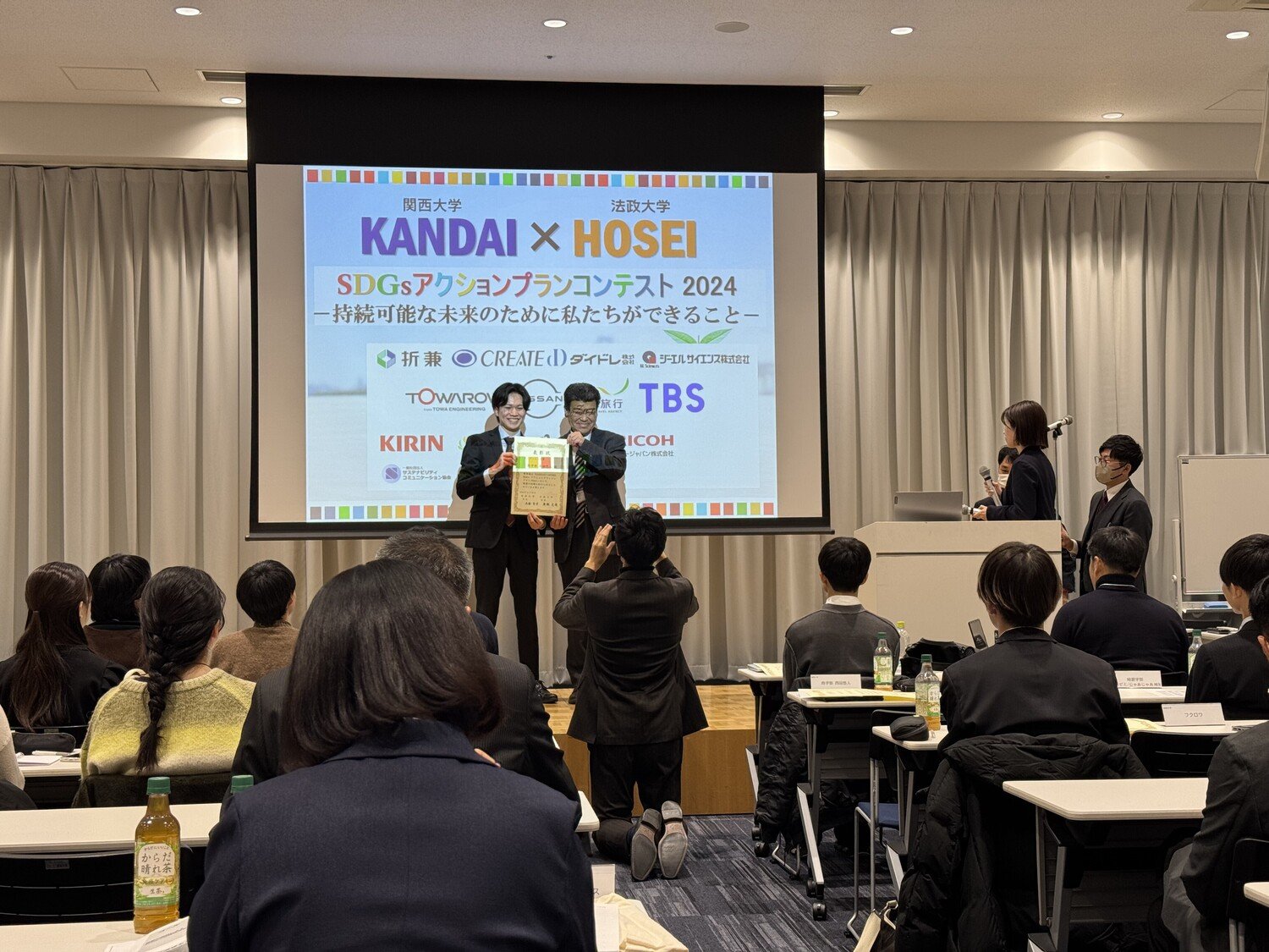 関西大学梅田キャンパスにて「KANDAI×HOSEI SDGs アクションプランコンテスト2024」が実施され、最優秀賞と株式会社日本旅行賞、オーディエンス賞を受賞しました。