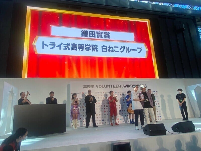 西田悠人(代表社員)、小川璃久(ESG推進部 部長)、下田哲也(総務部 部長)、坪田真奈、阿部結衣が2023年8月10日に高校生ボランティア・アワード2023で応援団員特別賞である鎌田實賞を受賞しました。