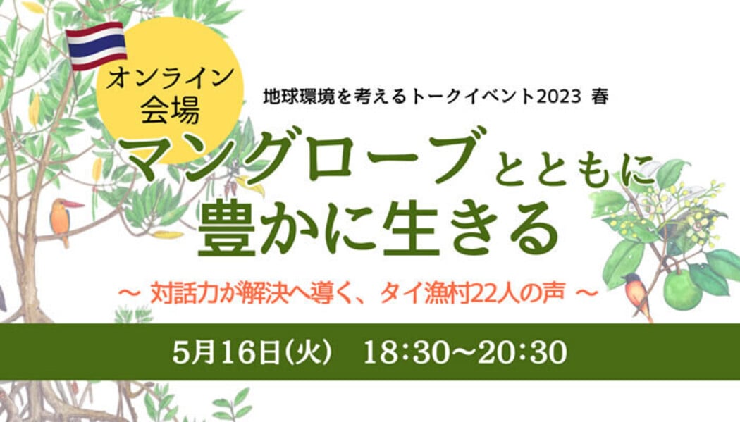 オンラインによるトークイベントです。タイの漁村でマングローブを植林し、自らの生活を豊かにする取り組みに参加する住民リーダーの生の声をお届けします。