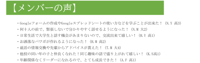 ・年齢関係なく リーダーになれるので、とても成長できた!(A.F 高1)