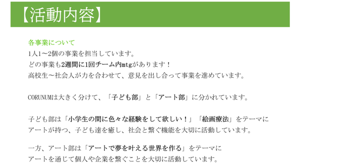 この募集の受入法人「NPO法人/学生団体CORUNUM」をフォローして、