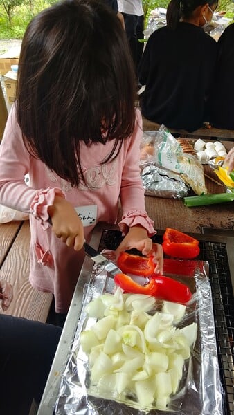 親御さんがBBQの準備に四苦八苦している中、お子さんも何ができるのかドキドキな様子でした。