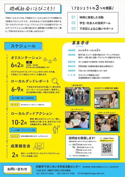下京ローカルグッドは、下京区をフィールドにまちづくりを実践する 1年間のプロジェクトです。